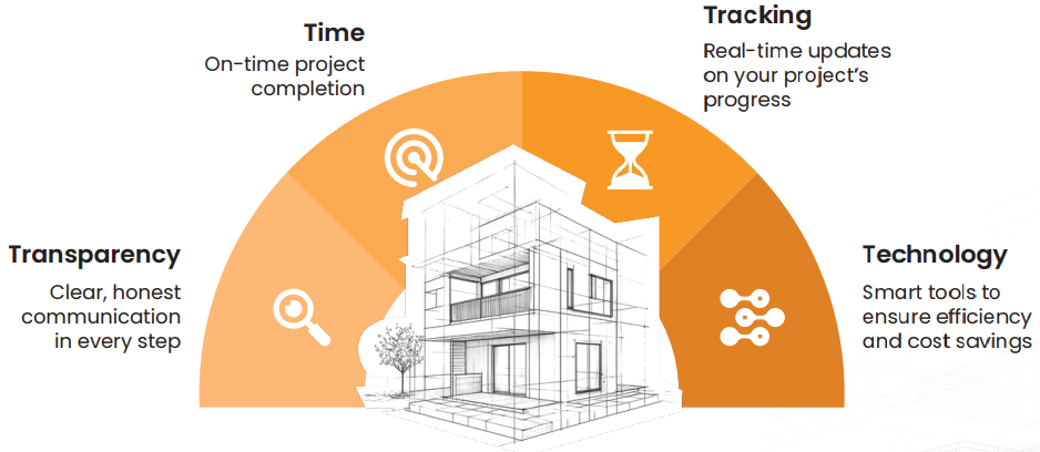 We aim to simplify home construction by offering a one-stop solution, combining quality service with technology-driven transparency. Unlike platforms that only act as mediators, we take full responsibility for your project’s success.